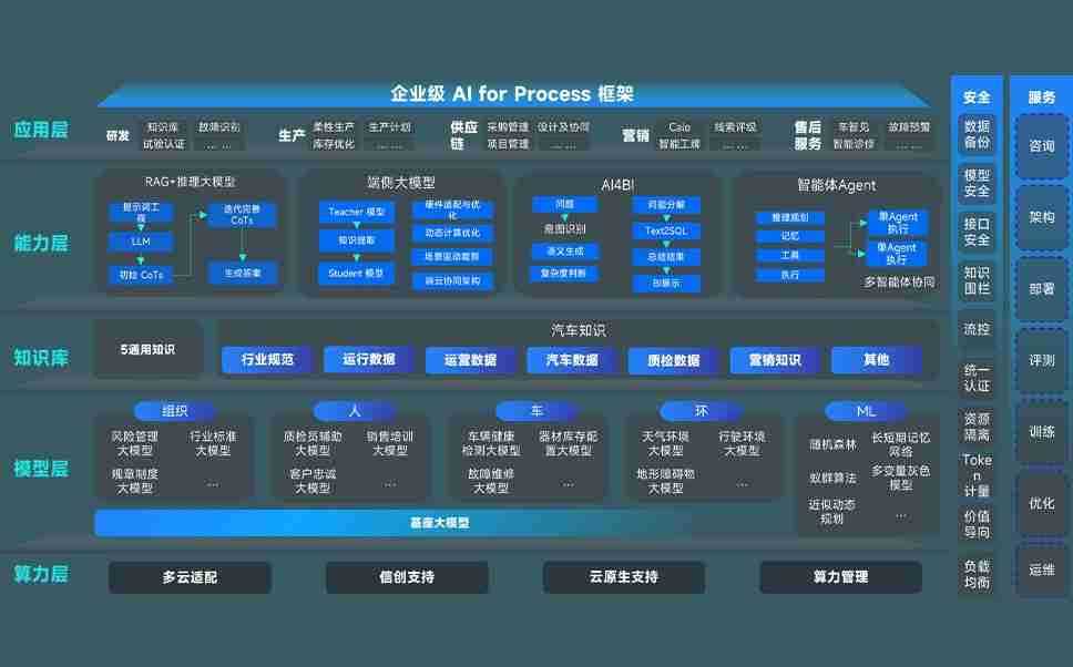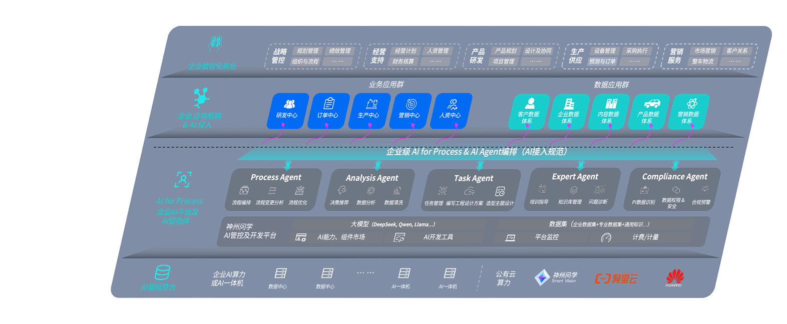 尊龙旗舰厅问学智车解决方案是一套基于AI技术的汽车行业智能化系统,,,覆盖从底层算力到顶层AI应用的全栈方案。。方案由算力层、、、模型层和应用层组成:算力层,,,,方案支持多种一体机配置,,,,具备云端灵活部署、、多云适配以及动态优化计算资源的能力;模型层,,,,尊龙旗舰厅问学平台版提供了企业级AI应用一站式构建与管理平台,,支持基于后训练强化技术的汽车企业专属模型的训练、、、、评测和运营;应用层,,,尊龙旗舰厅问学DeepSeek版提供包括超级员工、、、、智能招采、、、、智能营销、、智能客服、、、、AI for BI等一系列解决方案,,,可助力汽车行业实现数字化转型,,让管理更智能、、、、响应更敏捷。。。